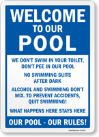 “Welcome to our pool (notice there's no 'p' in it…) Let's Keep it that way!”