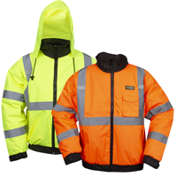 We offer hi-vis rain gear like our Renegade rain coat and our Class 3 Type R hi-vis quilted bomber jacket for cold and wet conditions, covering a wide range of weather conditions and job site environments across our full high-visibility apparel line.