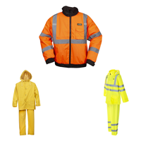 We offer hi-vis rain gear like our Renegade rain coat and our Class 3 Type R hi-vis quilted bomber jacket for cold and wet conditions, covering a wide range of weather conditions and job site environments across our full high-visibility apparel line.