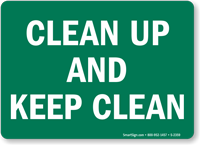 We carry workplace housekeeping signs covering keep area clean, clean up after yourself, good housekeeping prevents accidents, and return tools to storage reminders. Signs are available in aluminum, plastic, and adhesive vinyl for posting at workstations, break rooms, production floors, and storage areas - serving as daily visual reminders that support 5S programs and OSHA housekeeping compliance.