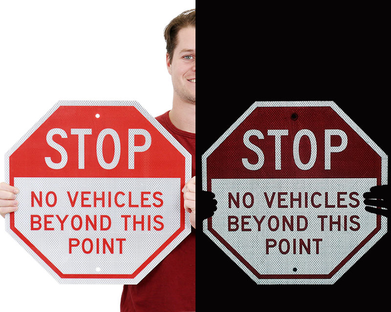 Options include Engineer Grade, High Intensity Prismatic (HIP), and Diamond Grade reflectivity. Choosing a reflective option, especially HIP or Diamond Grade for critical stop commands like a standard reflective aluminum stop sign or an instructional one such as 'stop proceed slowly' (ensure reflective grade is selected), significantly enhances the sign's visibility under headlights. This is crucial for safety in parking lots and on private roads during nighttime or low-light conditions. According to the MUTCD Section 2A.07, retroreflectivity is a standard requirement for regulatory signs. Our video explains how to choose the best reflective grade for your needs.
