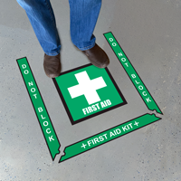 It is important to make sure to keep the area clear around important equipment like fire extinguishers, AEDs, electrical panels, and first aid kits, and these floor signs will help make sure that it is.