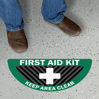 It is important to make sure to keep the area clear around important equipment like fire extinguishers, AEDs, electrical panels, and first aid kits, and these floor signs will help make sure that it is.
