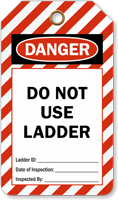 Ladder Inspection Tags clearly designate your most recent inspection information in addition to the status of the ladder or any warnings and hazards. Our large selection of Ladder Inspection Checklist Tags meets OSHA standard 1910.145 for accident prevention, assuring that any potential dangers are eliminated through regular inspection.