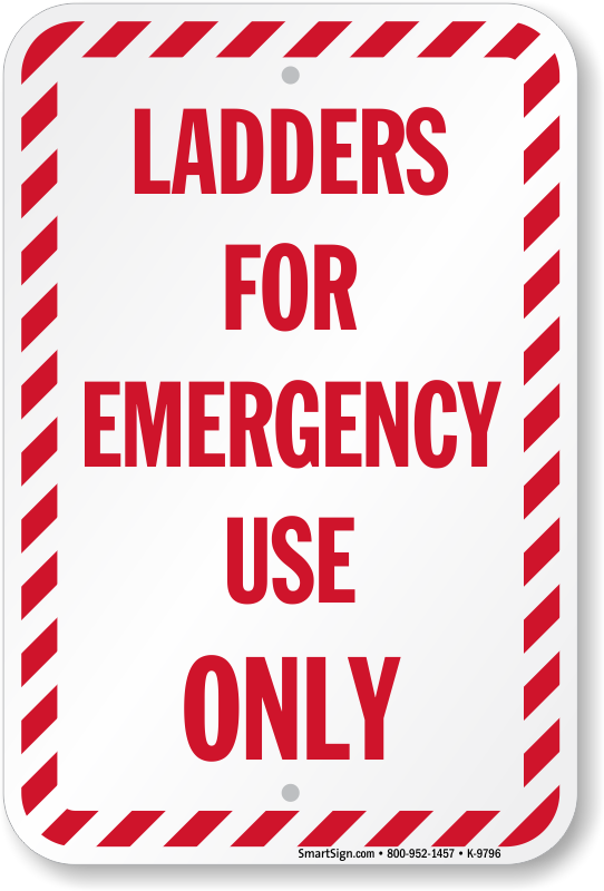 Fire And Emergency Ladder Sign: Ladders For Emergency Use Only (With Striped Border) Learn More...