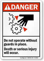 Do not operate without guards in place sign