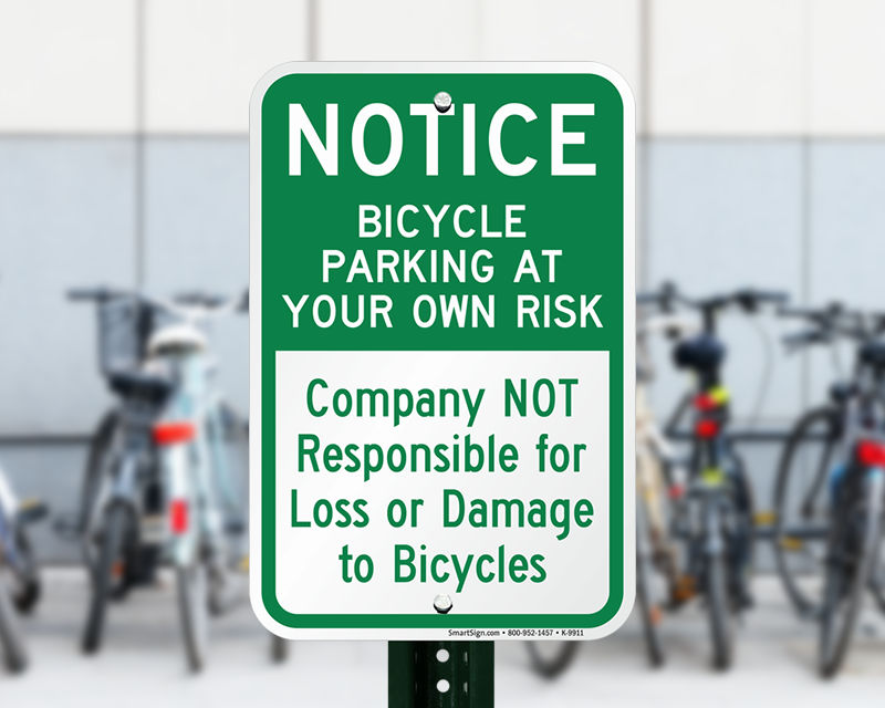 Yes, property owners can help limit liability by posting clear notices regarding responsibility for parked bicycles, and we offer signs for this purpose within our bike signs collection.