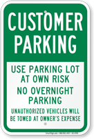Post no overnight parking signs to keep your lot safe at night. Your lot is designed for customers and daytime traffic – and not for the public’s convenience and free parking.