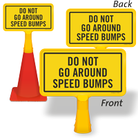 While most of our speed bump signs are suitable for parking lots, signs installed on posts are rather difficult to miss. Additionally, our ConeBoss speed bump signs that warn against going around the bumps can do a good job at keeping the parking lot safe, streamlined, and organized. You may also use our reusable speed bump pavement stencils to mark speed bumps and prevent potential damage to vehicles.