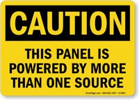 Our multiple power source signs are available in Caution, Warning, and Danger headers in durable plastic and heavy-duty aluminum built to last 10 or more years outdoors, alerting workers and electricians that equipment has more than one energy source that must be de-energized before servicing to prevent electrocution during lockout/tagout procedures.
