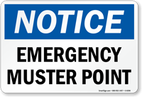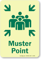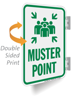 Muster point signs direct all guests and employees during an emergency. Post signs for your thoughtful and prepared evacuation plan.