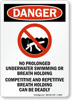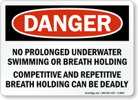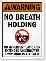 They prohibit competitive breath-holding games, swimming long distances underwater in one breath, and static apnea training.These activities are high-risk behaviors in recreational pools. Check out the specific no breath holding signs we offer.