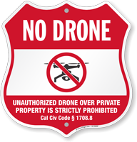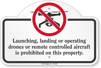 Even though drones are small they can still be considered a hazard to people on the ground and even aircraft overhead. Drones are becoming easily available and affordable so make sure they stay off your property with a No Drone Sign.