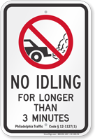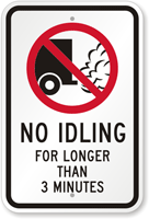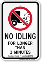 Most no idling ordinances allow 3–5 minutes of idling before a violation occurs, though exact limits vary by location. Some school and hospital zones reduce this to 1–2 minutes. In cold or hot weather, exceptions may allow longer idling for temperature control. Signs like the 3-minute idling law sign help communicate clear local regulations.