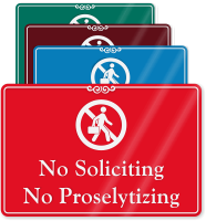 Prevent soliciting and proselytizing in your premises with this highly visible designer ShowCase Wall sign. A durable design and a range of color options ensure that your message remains new and elegant for years.