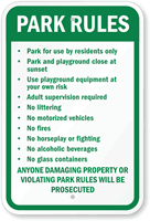 • • Every park has different set of rules. Choose from our large selection of Park Signs and find the ones you need for your park.