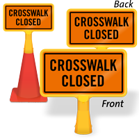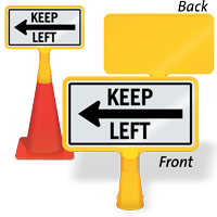 Size: 8" x 15" Material type: Reflective “No-Tip” Traffic Cone Sign - Two Sides Printed