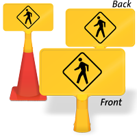 Size: 8" x 15" Material type: Reflective “No-Tip” Traffic Cone Sign - Two Sides Printed