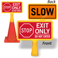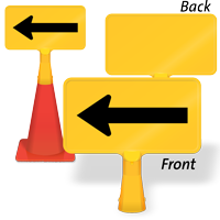 Size: 8" x 15" Material type: Reflective “No-Tip” Traffic Cone Sign - Two Sides Printed