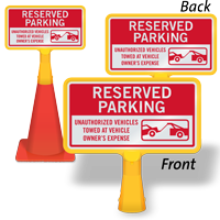 Put a cone to even more use! ConeBoss parking signs are a convenient and low cost way to transform a cone into a parking sign for your lot or property.