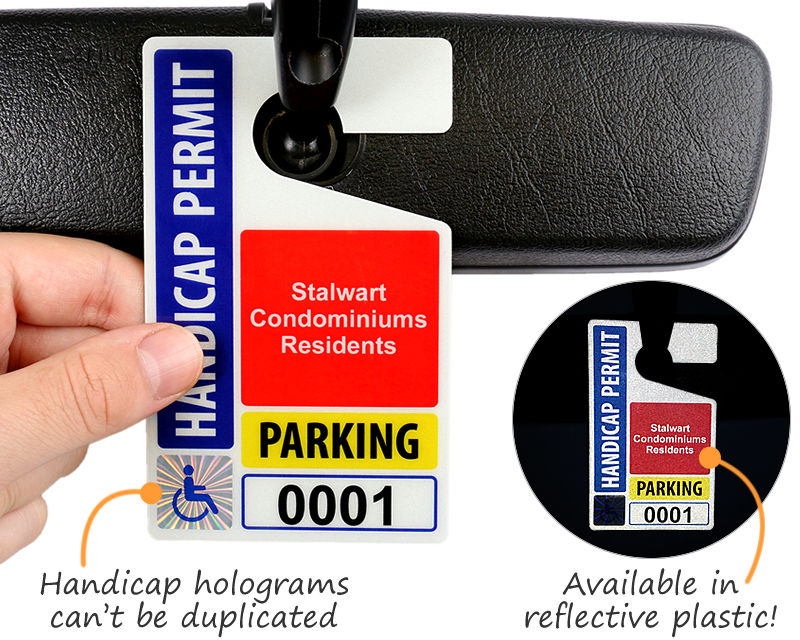 These Handicap Parking Permits are ideal for private lots. You can either choose a stock design or an easily customizable template.