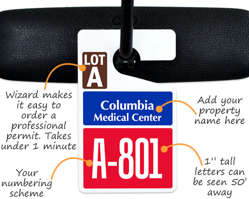 Add your company name or logo to our vivid Spot-a-Pass™ parking permits. These feature the tallest and boldest numbers you'll find online.
