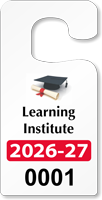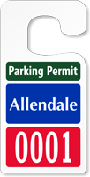 Large parking hang tags, also known as "jumbo" permits, are oversized mirror tags. Their main benefit is high visibility, allowing security to read text and numbers from a much greater distance. Explore our collection of large parking tags.