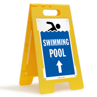 Yes, a-frame (sandwich board) signs are great for "pool closed" notifications because they can be placed right in the walkway, making it impossible for someone to miss the message. These are known as portable pool signs.