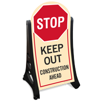 • • Both have “tilt-to-engage wheels” that make these signs easy to move.
