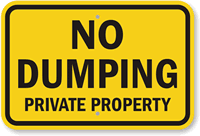 Clean up your surrounding areas with Private Property No Dumping Signs to prevent people from dumping trash like litter, debris, and unwanted furniture on your property. Make people aware of the law and penalties, so they'll hesitate before putting their trash where it doesn’t belong.