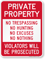 • • Choose from over 40 different private property signs, for a home, vacant lot, or treehouse.