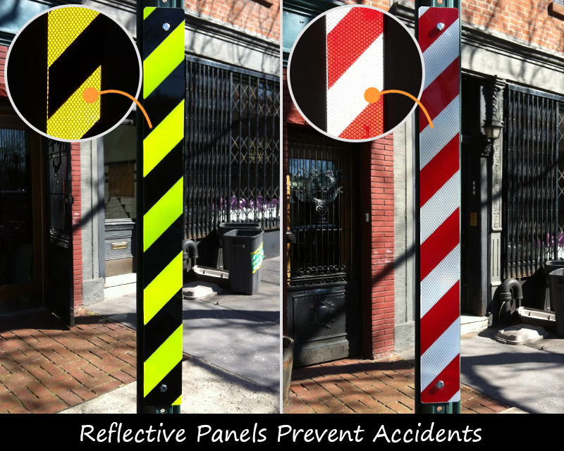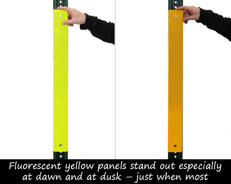 43% of accidents occur at intersections. Increase visibility at busy or hidden instersections with a selection of reflective post panels. Add extra visibility in standard or fluorescent reflective colors.