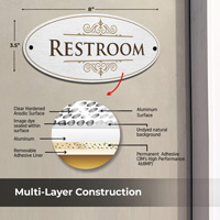 A clean, professional sign ideal for marking restrooms in institutional settings.