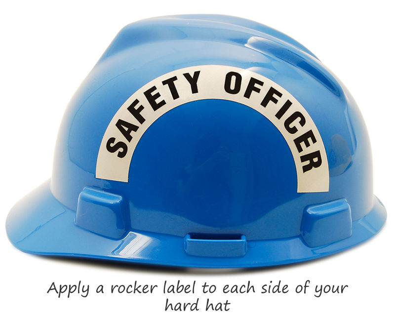 • • Our rocker labels fit on the sides of your hard hats. Our crescent labels “snug up” over the top of our standard circular labels.