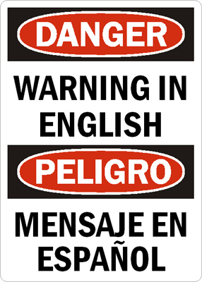 Safety messages should be understood by one and all in your facility irrespective of language differences. Notify everybody of a danger with a personalized bilingual message in English and Spanish. Available in several sizes and materials to suit individual requirements.