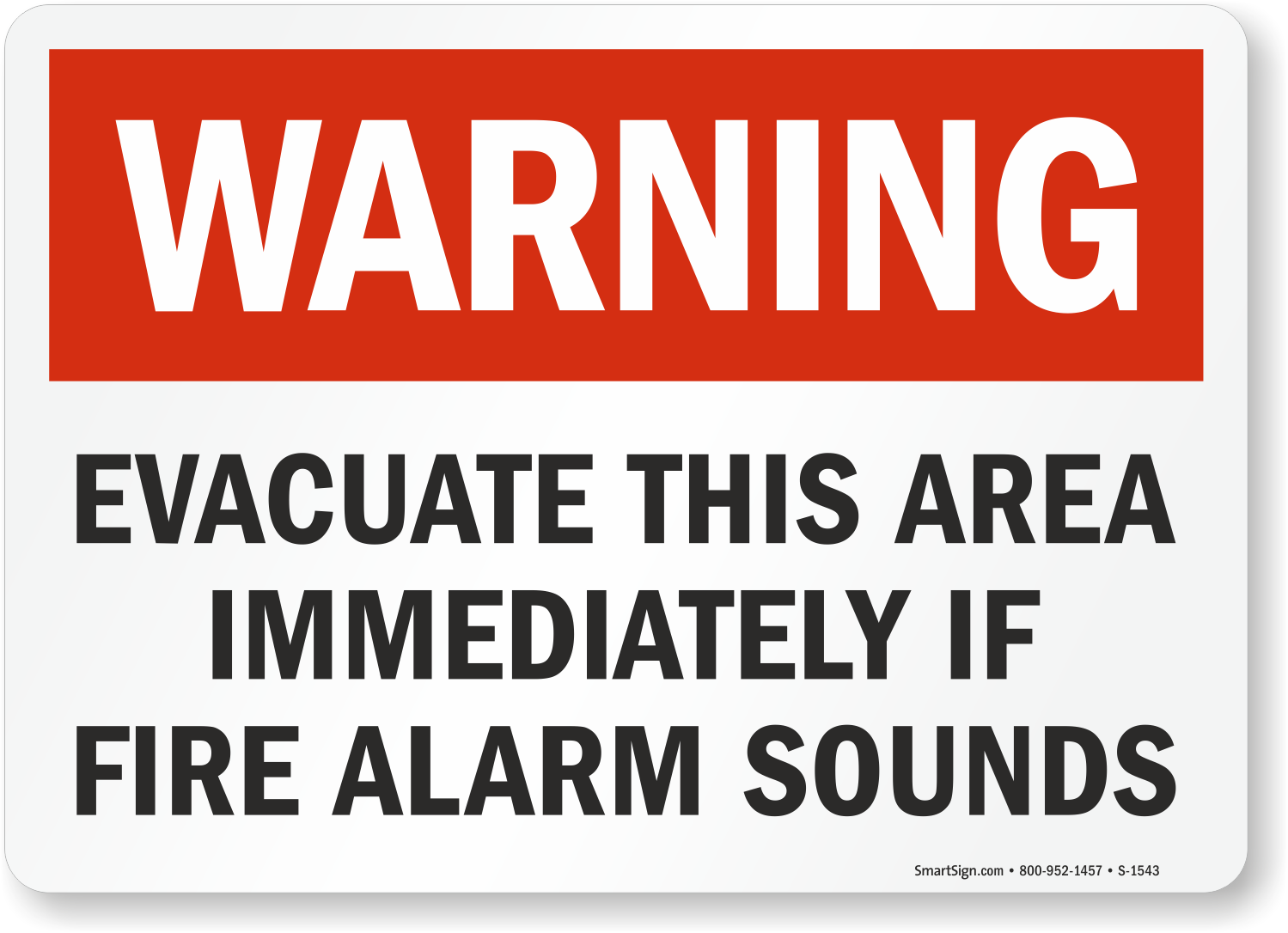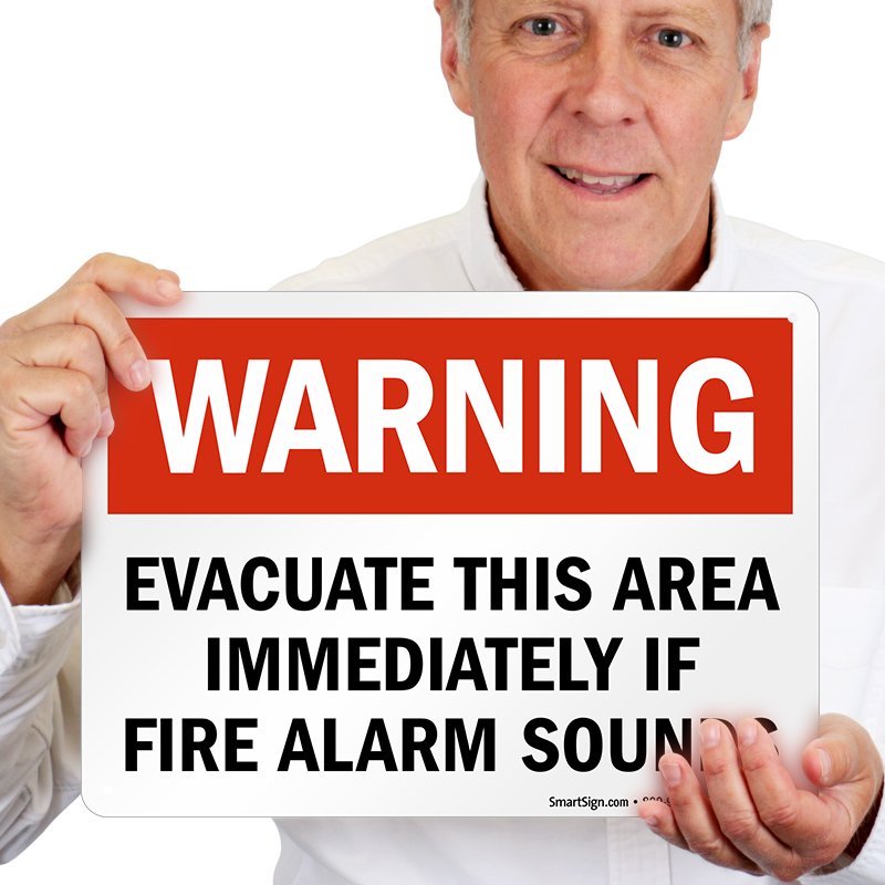 Don't be caught unprepared in a fire emergency. Use a "evacuate this area immediately if fire alarm sounds" sign. Not only do signs look good, they work!