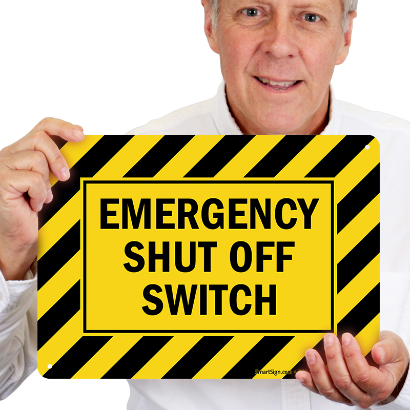 Keep your workforce safe. Use a "emergency shut off switch" sign. A sign is proven and effective.