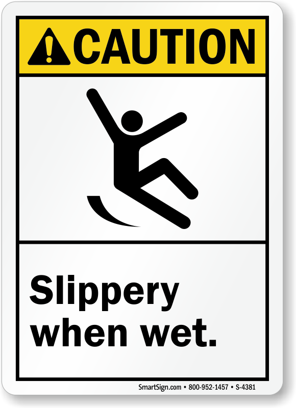 ANSI Caution Sign: Slippery When Wet. (with Graphic) Learn More...