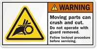 Check out all our Keep Hands Clear Labels on this page. Our OSHA and ANSI Labels warn workers to practice safety with machines associated with crushing, cutting, entanglement, and snapping hazards. Moving and rotating blades shafts, and other machine parts are dangerous to work with and everyone must be well informed of their risks before starting work.