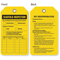 Both OSHA and the Department of Labor cite scaffolding problems as some of the most-frequent workplace safety violations. Scaffolding Inspection Tags track and maintain regular inspections.