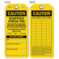 • • High-strength grommets and reinforced eyelets offer superior durability and pull-strength for a Scaffold Safety Tag that last longer in tough conditions.