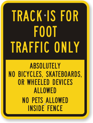 Track Sign: Track Is For Foot Traffic Only - No Bicycles, Skateboards Or Wheeled Devices Allowed K-5214 Learn More...