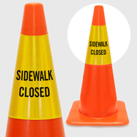 Size: 8" x 15" Material type: Reflective “No-Tip” Traffic Cone Sign - Two Sides Printed