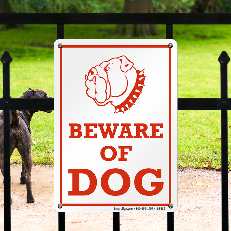 Dogs although playful can also be a liability. Warn people your dog is present with a Beware Of Dog Security Sign.