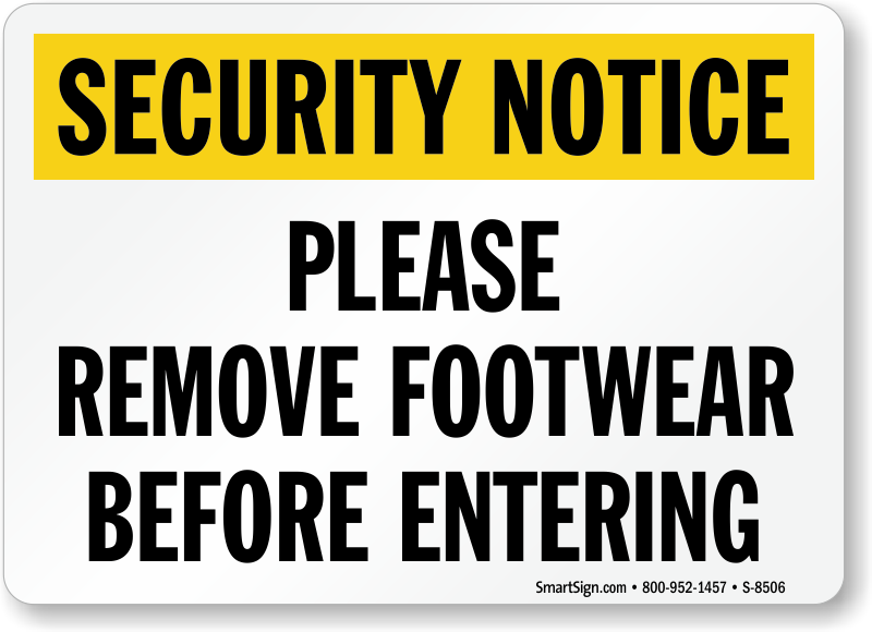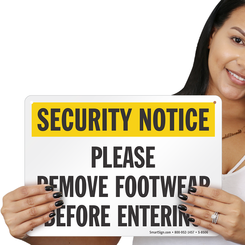 Prepare people for security and inspection with a Please Remove Footwear Sign. This Security Notice Sign comes in vinyl to ensure the best quality for your premises.