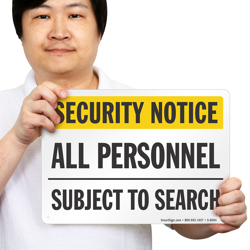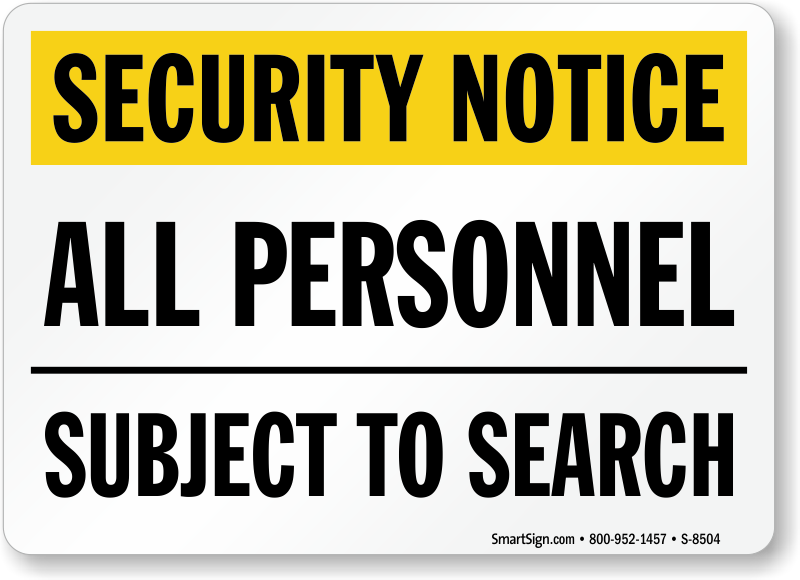 Even security personnel are allowed and required to be searched. Inform them with an All Personnel Subject To Search Security Notice Sign.