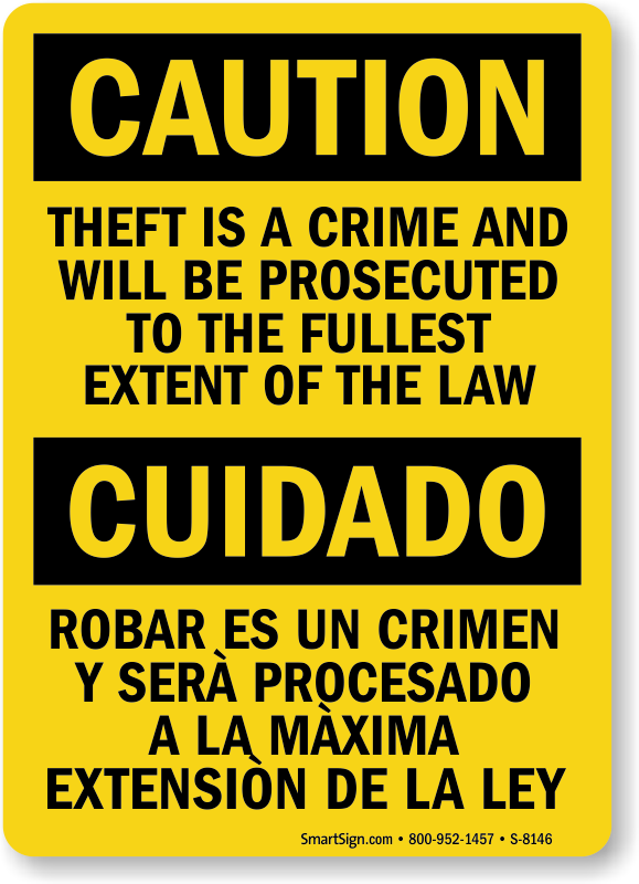 Combat theives on your site with a hefty attention-grabbing Caution sign. A sign is a constant reminder that you will enforce your rules.