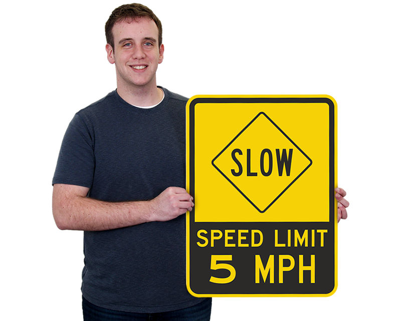 Remind people to slow down and take their time. Following the speed limit saves lives, so post signs today. Choose from our large selection of standard and customizable Slow Down signs.