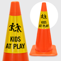 We certainly do. You may choose from our heavy-duty reflective cone sleeves and double-sided ConeBoss signs that fit on standard traffic cones and may be moved as desired. Alternatively, you may order a sign base for your aluminum slow-kids-at-play sign and keep a portable sign handy at all times!.
