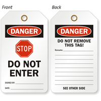 Stop sign shape makes that everyone gets the warning – STOP! These over-sized tags, along with the well-known octagon shape makes it hard to ignore your message.